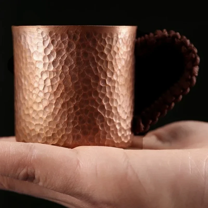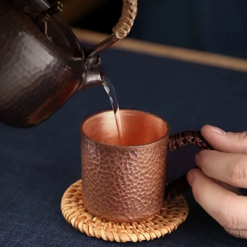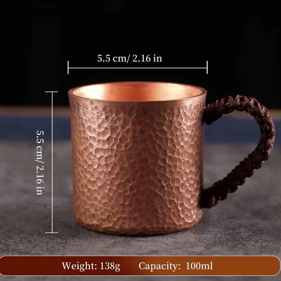 كوب عتيق من النحاس الخالص، كوب بمقبض منسوج، سعة 100 مل، كوب قهوة وحليب للفطور، كوب شاي مصنوع يدويًا، أدوات مائدة للشرب