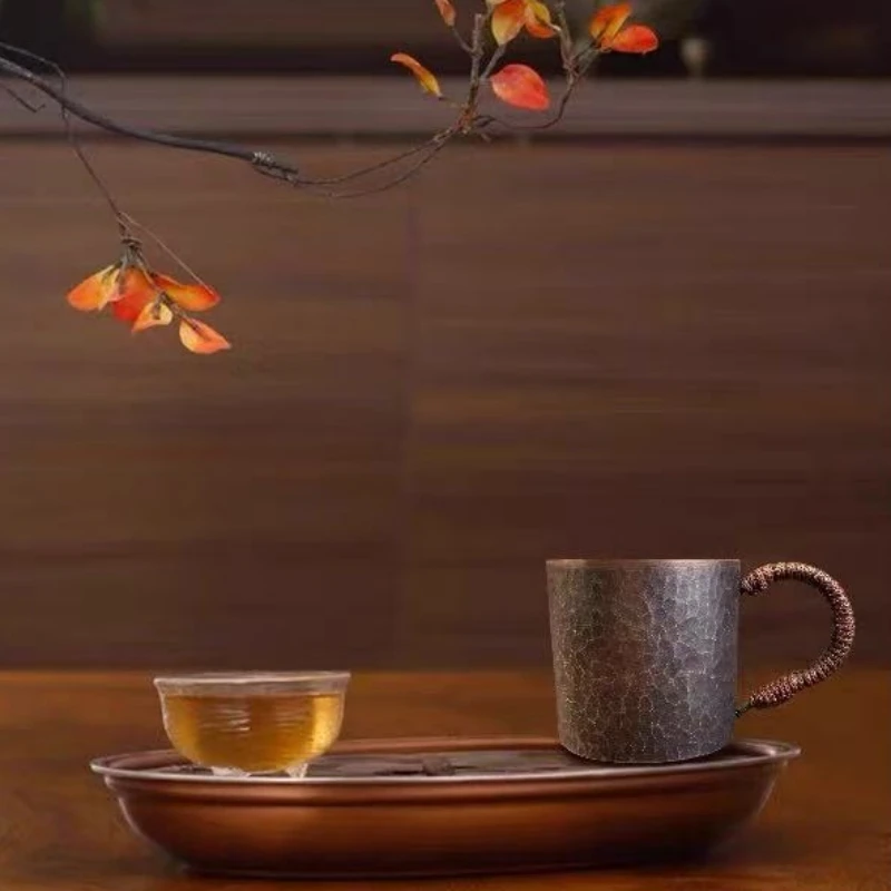 كوب قهوة صغير عتيق من النحاس الخالص، مصنوع يدويًا بمقبض منسوج، سعة 150 مل، كوب شاي محمول، أدوات مائدة