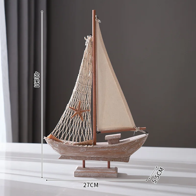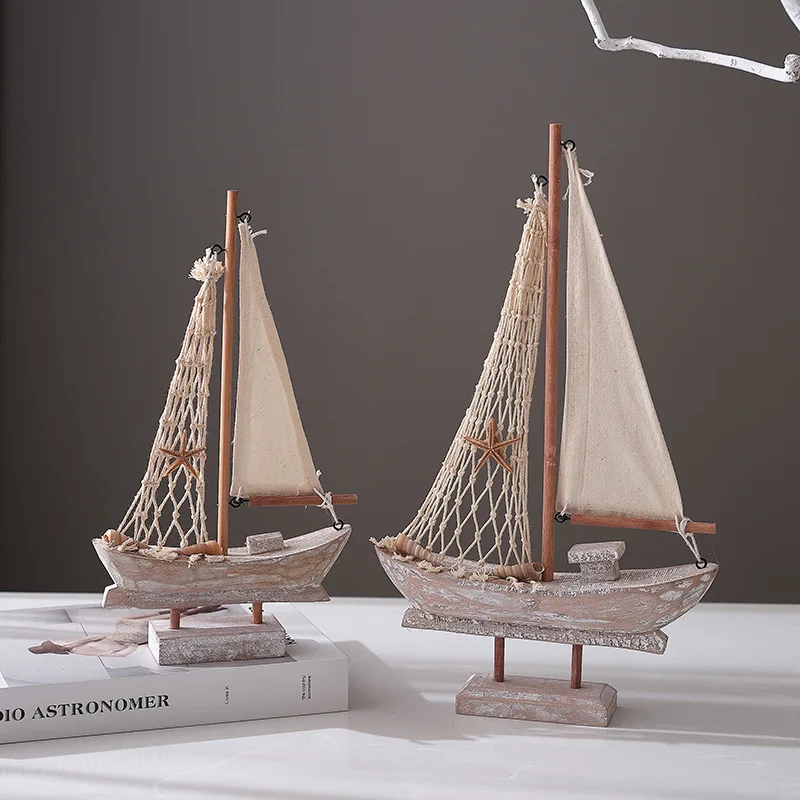 الرجعية البحر الأبيض المتوسط نمط خشبي الإبحار قارب الحلي اليدوية الصغيرة الخشب الصيد قارب نموذج سطح المكتب الحرف هدية DIY ديكور المنزل
